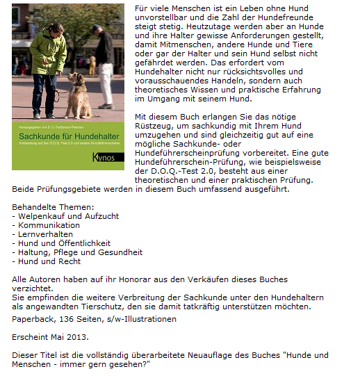 Piturru, Weigand (2004): Lassie, Rex und Co. klären auf. Kynos Verlag.